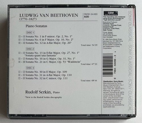 Trio de CDs / Rudolf Serkin, piano / Ludwig Van Beethoven / Piano Sonatas / Sony Classical / Edição importada Estado Unidos – 1994 / CD tocando normalmente. A Oto Livraria é uma extensão da Oto Reifschneider Galeria de Arte, que funciona em Brasília desde 2015. Com foco em artes e assuntos correlatos (como design, ilustração, fotografia e histórias em quadrinhos), o acervo também conta com LPs, CDs e DVDs. A Oto Livraria funciona na mesma quadra da galeria de arte. As compras podem ser retiradas pessoalmente em Brasília ou enviadas pelos Correios (solicite valores de envio).