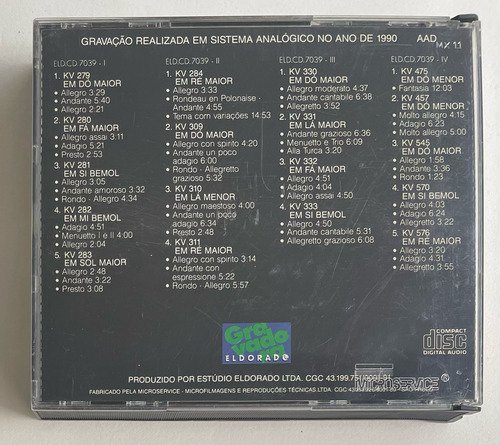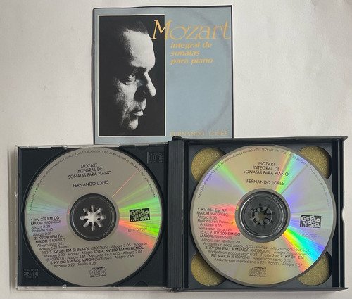 4 CDS / Fernando Lopes / Mozart / Integral de sonatas para piano / Eldorado / Edição Nacional Brasil / CDs tocando normalmente.A Oto Livraria é uma extensão da Oto Reifschneider Galeria de Arte, que funciona em Brasília desde 2015. Com foco em artes e assuntos correlatos (como design, ilustração, fotografia e histórias em quadrinhos), o acervo também conta com LPs, CDs e DVDs. A Oto Livraria funciona na mesma quadra da galeria de arte. As compras podem ser retiradas pessoalmente em Brasília ou enviadas pelos Correios (solicite valores de envio).