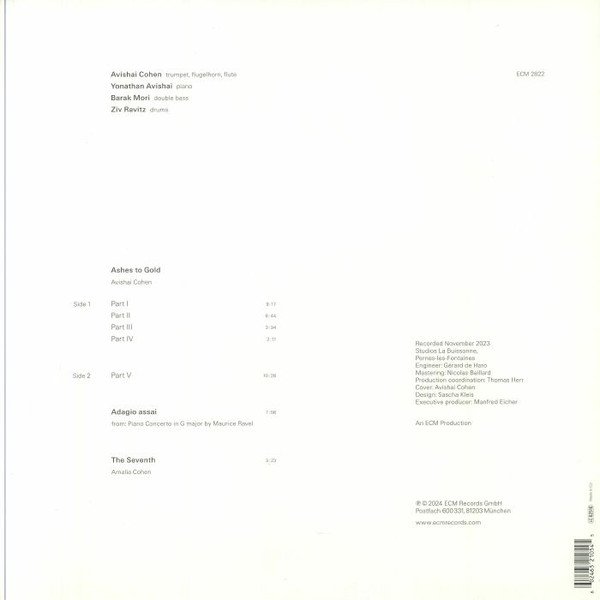 Ashes To Gold é um álbum do contrabaixista e compositor Avishai Cohen, lançado em 2024. A obra apresenta uma abordagem jazzística lírica e introspectiva, contando com a participação de um trio formado pelo líder ao baixo, Guy Moskovich no piano e Roni Kaspi na bateria. O disco é marcado por melodias fluidas e uma interação sofisticada entre os músicos, explorando texturas que equilibram a tradição do jazz com elementos contemporâneos. A produção é notada pela clareza sonora e pela sensibilidade emocional característica das composições de Cohen, consolidando sua busca por um equilíbrio entre a técnica refinada e a expressão melódica profunda.