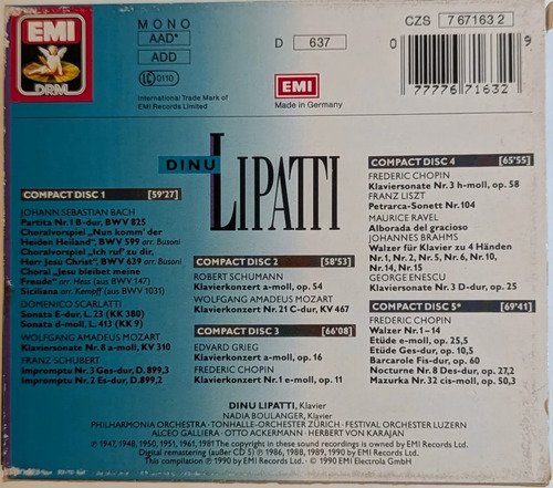 Box set / 5 CDs / Dinu Lipatti / EMI.A Oto Livraria é uma extensão da Oto Reifschneider Galeria de Arte, que funciona em Brasília desde 2015. Com foco em artes e assuntos correlatos (como design, ilustração, fotografia e histórias em quadrinhos), o acervo também conta com LPs, CDs e DVDs. A Oto Livraria funciona na mesma quadra da galeria de arte. As compras podem ser retiradas pessoalmente em Brasília ou enviadas pelos Correios (solicite valores de envio).