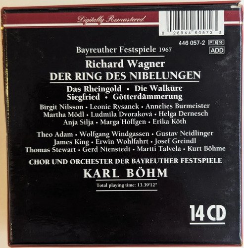Box set / 14 CDs / Bayreuther Festspiele / Wager – Ring – Böhm / Philips Classics.A Oto Livraria é uma extensão da Oto Reifschneider Galeria de Arte, que funciona em Brasília desde 2015. Com foco em artes e assuntos correlatos (como design, ilustração, fotografia e histórias em quadrinhos), o acervo também conta com LPs, CDs e DVDs. A Oto Livraria funciona na mesma quadra da galeria de arte. As compras podem ser retiradas pessoalmente em Brasília ou enviadas pelos Correios (solicite valores de envio).