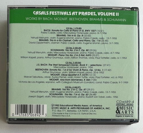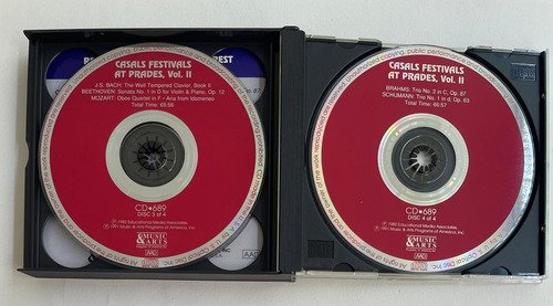 Casals Festivals at Prades, volume 2 (4 CDs ) / Works by Bach, Mozart, Beethoven, Brahms & Schumann / Music & Arts Programs & America / Edição importada Estados Unidos – 1991 / CDs tocando normalmente.A Oto Livraria é uma extensão da Oto Reifschneider Galeria de Arte, que funciona em Brasília desde 2015. Com foco em artes e assuntos correlatos (como design, ilustração, fotografia e histórias em quadrinhos), o acervo também conta com LPs, CDs e DVDs. A Oto Livraria funciona na mesma quadra da galeria de arte. As compras podem ser retiradas pessoalmente em Brasília ou enviadas pelos Correios (solicite valores de envio).