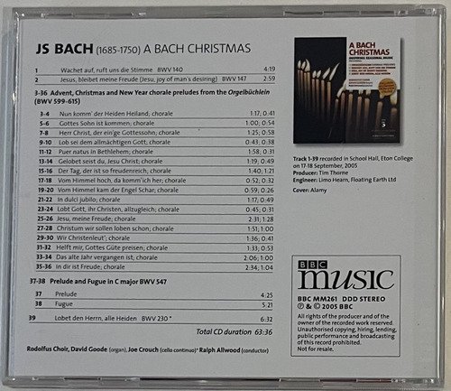 CD BBC Music / A Bach Christmas Inspiring Seasonal Music / Including: Orgelbuchlein Chorale Preludes Wachet Auf, Ruft Uns Die Stimme Jesu, Joy of Man’s Desiring Lobet Den Herrn, Alle Heiden / Rodolfus Choir David Goode (organ) Ralph Allwood (conductor)A Oto Livraria é uma extensão da Oto Reifschneider Galeria de Arte, que funciona em Brasília desde 2015. Com foco em artes e assuntos correlatos (como design, ilustração, fotografia e histórias em quadrinhos), o acervo também conta com LPs, CDs e DVDs. A Oto Livraria funciona na mesma quadra da galeria de arte. As compras podem ser retiradas pessoalmente em Brasília ou enviadas pelos Correios (solicite valores de envio).