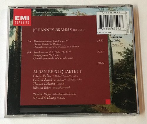 ABQ – Alban Berg Quartett/ Sabine Meyer/ Hariolf Schlichtig – Brahms/ Klarinettenquitett Op. 115/ Streichquintett Nr. 2 Op.111/ EMI Classics/ 1999, EMI/ Edição europeia / CD tocando normalmente / Música clássica / Música de concerto / Música erudita.