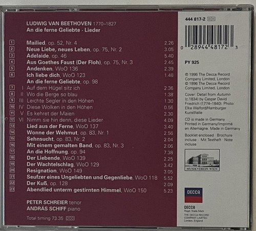 CD Decca / An Die Ferne Geliebte • Beethoven Lieder / Peter Schreier – András Schiff.A Oto Livraria É Uma Extensão Da Oto Reifschneider Galeria De Arte, Que Funciona Em Brasília Desde 2015. Com Foco Em Artes E Assuntos Correlatos (como Design, Ilustração, Fotografia E Histórias Em Quadrinhos), O Acervo Também Conta Com Lps, Cds E Dvds. a Oto Livraria Funciona Na Mesma Quadra Da Galeria De Arte. as Compras Podem Ser Retiradas Pessoalmente Em Brasília Ou Enviadas Pelos Correios (solicite Valores De Envio).