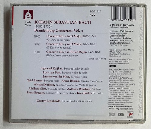 Gustav Leonhardt, Harpsichord and Conductor / Bach: Brandenburg Concertos, Vol. 2 Nos. 4, 5 & 6 / Sony Classical / Edição Nacional Brasil – 1999 / CD tocando normalmente.A Oto Livraria é uma extensão da Oto Reifschneider Galeria de Arte, que funciona em Brasília desde 2015. Com foco em artes e assuntos correlatos (como design, ilustração, fotografia e histórias em quadrinhos), o acervo também conta com LPs, CDs e DVDs. A Oto Livraria funciona na mesma quadra da galeria de arte. As compras podem ser retiradas pessoalmente em Brasília ou enviadas pelos Correios (solicite valores de envio).