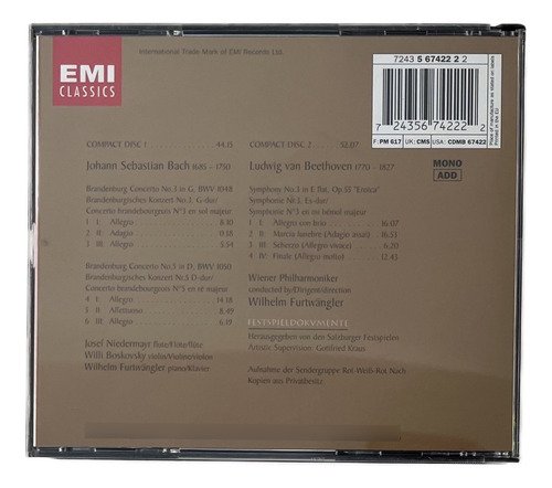 CD Bach Brandenburgische Konzerte No. 3 & 5 – Beethoven Symphonie No. 3 “Eroica” / Wiener Philharmoniker – Wilhelm Furtwängler