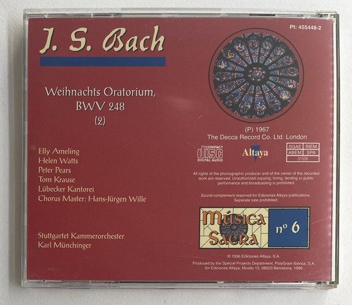 Orquestra de Câmera de Stuttgart – Karl Münchinger / J.S. Bach Oratório de Natal BWV 248, (2) / Música Sacra N° 6 / Altaya / Edição importada Europa – 1996 / CD tocando normalmente.A Oto Livraria é uma extensão da Oto Reifschneider Galeria de Arte, que funciona em Brasília desde 2015. Com foco em artes e assuntos correlatos (como design, ilustração, fotografia e histórias em quadrinhos), o acervo também conta com LPs, CDs e DVDs. A Oto Livraria funciona na mesma quadra da galeria de arte. As compras podem ser retiradas pessoalmente em Brasília ou enviadas pelos Correios (solicite valores de envio).