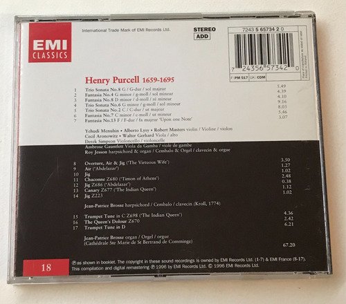 Seja o primeiro a avaliar “CD Baroque Purcell – Instrumental Works/ EMI Classics, 1996”