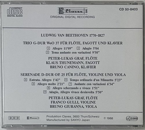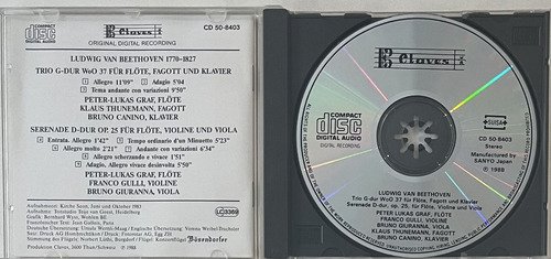 CD Claves / Beethoven Flötentrios / Peter-Lukas Graf, Flöte – Franco Gulli, Violine – Bruno Giuranna, Viola – Klaus Thunemann, Fagott – Bruno Canino, Klavier.A Oto Livraria é uma extensão da Oto Reifschneider Galeria de Arte, que funciona em Brasília desde 2015. Com foco em artes e assuntos correlatos (como design, ilustração, fotografia e histórias em quadrinhos), o acervo também conta com LPs, CDs e DVDs. A Oto Livraria funciona na mesma quadra da galeria de arte. As compras podem ser retiradas pessoalmente em Brasília ou enviadas pelos Correios (solicite valores de envio).
