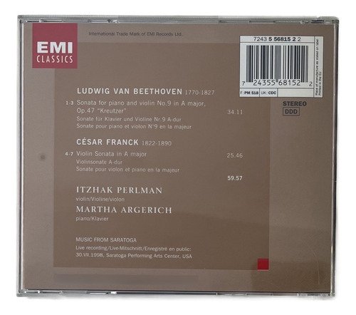 CD EMI Classics / Beethoven “Kreutzer” Sonata – Franck Sonata / Martha Argerich e Itzhak Perlman.