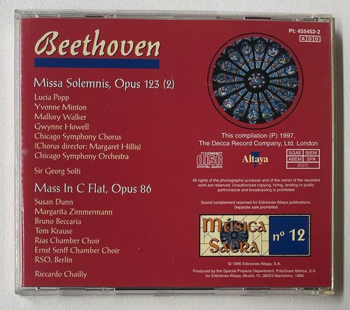 Chicago Symphony Chorus – Chicago Symphony Orchestra – Sir. Georg Solti – Rias Chamber Choir (Opus 86) – Ernst Senff Chamber Choir (Opus 86) – Riccardo Chailly / Beethoven – Missa Solemnis Opus 123 (2) – Missa em Dó Maior Opus 86 / Música Sacra N° 12 / Edição importada Europa / CD tocando normalmente.A Oto Livraria é uma extensão da Oto Reifschneider Galeria de Arte, que funciona em Brasília desde 2015. Com foco em artes e assuntos correlatos (como design, ilustração, fotografia e histórias em quadrinhos), o acervo também conta com LPs, CDs e DVDs. A Oto Livraria funciona na mesma quadra da galeria de arte. As compras podem ser retiradas pessoalmente em Brasília ou enviadas pelos Correios (solicite valores de envio).