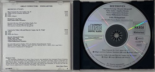 CD Naxos / Beethoven – Piano Concerto No. 3 – Triple Concerto / Marguerite Long, Piano – Ricardo Odnoposoft, Violin – Stefan Auber, Cello – Angelica Morales, Piano / Paris Conservatoire Orchestra – Vienna Philharmonic Orchestra / Felix Weingartner / Great Conductors • Weingartner.A Oto Livraria é uma extensão da Oto Reifschneider Galeria de Arte, que funciona em Brasília desde 2015. Com foco em artes e assuntos correlatos (como design, ilustração, fotografia e histórias em quadrinhos), o acervo também conta com LPs, CDs e DVDs. A Oto Livraria funciona na mesma quadra da galeria de arte. As compras podem ser retiradas pessoalmente em Brasília ou enviadas pelos Correios (solicite valores de envio).