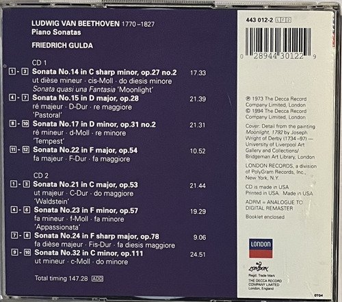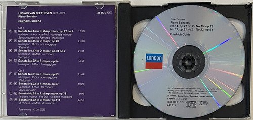 CD London / Beethoven Piano Sonatas Klaviersonaten 14, 15, 17, 21, 22, 23, 24, 32 / Friedrich Gulda / CD Duplo / Pequena avaria na dobradiça da caixa.A Oto Livraria é uma extensão da Oto Reifschneider Galeria de Arte, que funciona em Brasília desde 2015. Com foco em artes e assuntos correlatos (como design, ilustração, fotografia e histórias em quadrinhos), o acervo também conta com LPs, CDs e DVDs. A Oto Livraria funciona na mesma quadra da galeria de arte. As compras podem ser retiradas pessoalmente em Brasília ou enviadas pelos Correios (solicite valores de envio).