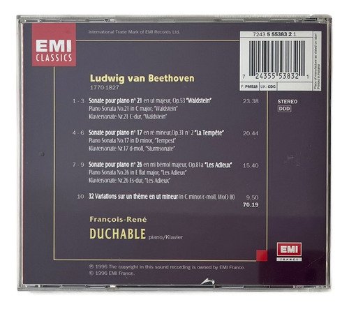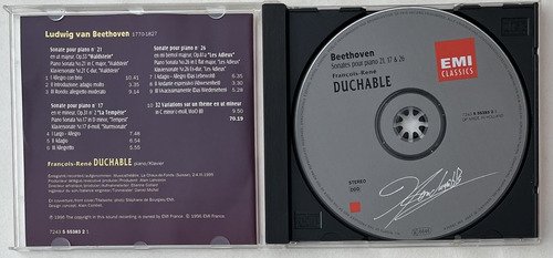 CD EMI Classics / Beethoven Piano Sonatas / Op31 no.2 “La Tempête” – Op. 53 “Waldstein’ – Op.81a ‘Les Adieux’ 32 Variations WoO 80 / François-René Duchable.