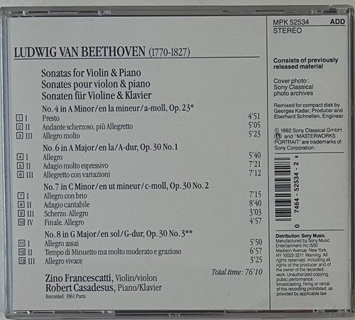 CD Sony Music / Portrait Masterworks / Beethoven – Sonatas for Violin & Piano – Sonates Pour Violon & Piano – Sonaten Für Violine & Klavier Nos. 4,6, 7 & 8. A Oto Livraria É Uma Extensão Da Oto Reifschneider Galeria De Arte, Que Funciona Em Brasília Desde 2015. Com Foco Em Artes E Assuntos Correlatos (como Design, Ilustração, Fotografia E Histórias Em Quadrinhos), O Acervo Também Conta Com Lps, Cds E Dvds. a Oto Livraria Funciona Na Mesma Quadra Da Galeria De Arte. as Compras Podem Ser Retiradas Pessoalmente Em Brasília Ou Enviadas Pelos Correios (solicite Valores De Envio).