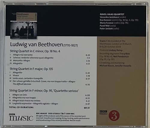 CD Beethoven String Quartets Op. 18 No.4 Op. 135 Op. 95