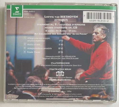 Daniel Barenboim / Beethoven / Symphony No. 9 Op. 125 D minor / Edição importada Alemanha – 1994 / CD tocando normalmente.A Oto Livraria é uma extensão da Oto Reifschneider Galeria de Arte, que funciona em Brasília desde 2015. Com foco em artes e assuntos correlatos (como design, ilustração, fotografia e histórias em quadrinhos), o acervo também conta com LPs, CDs e DVDs. A Oto Livraria funciona na mesma quadra da galeria de arte. As compras podem ser retiradas pessoalmente em Brasília ou enviadas pelos Correios (solicite valores de envio).