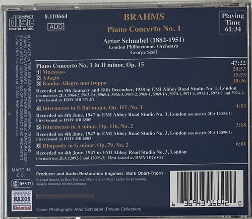 CD Brahms Piano Concerto No. 1 – Schnabel