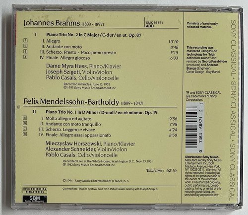 Seja o primeiro a avaliar “CD Brahms Piano Trio No. 2 Mendelssohn Piano Trio No. 1”