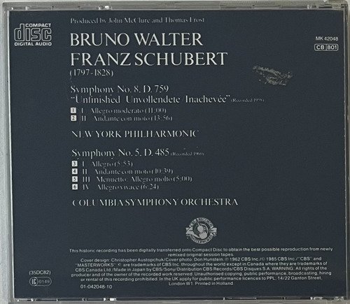 CD CBS / Bruno Walter Schubert – Symphony No. 8 – “Unfinished”/”Unvollendete”/ “Inachevée” – New York Philharmonic – Symphony No. 5 / Columbia Symphony Orchestra / Cbs Records Masterworks.A Oto Livraria É Uma Extensão Da Oto Reifschneider Galeria De Arte, Que Funciona Em Brasília Desde 2015. Com Foco Em Artes E Assuntos Correlatos (como Design, Ilustração, Fotografia E Histórias Em Quadrinhos), O Acervo Também Conta Com Lps, Cds E Dvds. a Oto Livraria Funciona Na Mesma Quadra Da Galeria De Arte. as Compras Podem Ser Retiradas Pessoalmente Em Brasília Ou Enviadas Pelos Correios (solicite Valores De Envio).
