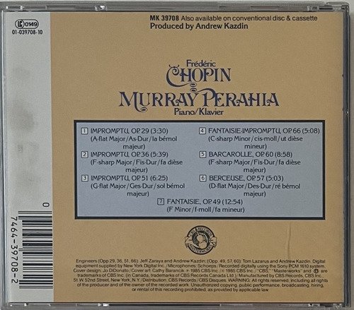CD CBS / Chopin – Impromptus – Fantaisie Op. 49 – Barcarolle – Berceuse / Murray Perahia / Cbs Records Masterworks.A Oto Livraria é uma extensão da Oto Reifschneider Galeria de Arte, que funciona em Brasília desde 2015. Com foco em artes e assuntos correlatos (como design, ilustração, fotografia e histórias em quadrinhos), o acervo também conta com LPs, CDs e DVDs. A Oto Livraria funciona na mesma quadra da galeria de arte. As compras podem ser retiradas pessoalmente em Brasília ou enviadas pelos Correios (solicite valores de envio).