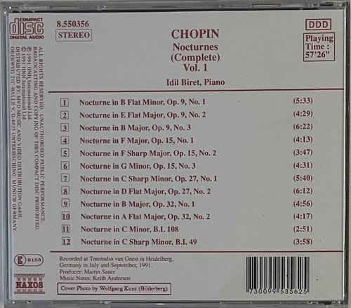 CD Naxos / Chopin – Nocturnes (Complete) Vol. 1 / Idil Biret, Piano.A Oto Livraria é uma extensão da Oto Reifschneider Galeria de Arte, que funciona em Brasília desde 2015. Com foco em artes e assuntos correlatos (como design, ilustração, fotografia e histórias em quadrinhos), o acervo também conta com LPs, CDs e DVDs. A Oto Livraria funciona na mesma quadra da galeria de arte. As compras podem ser retiradas pessoalmente em Brasília ou enviadas pelos Correios (solicite valores de envio).