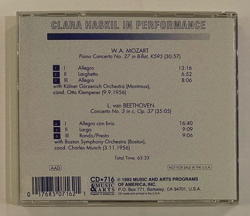 Clara Hakil in performance / Mozart Piano Concerto No. 27 in B-flat, K595 / Beethoven Concerto No. 3 in c, Op. 37 / Music & Arts / Edição importada Estados Unidos – 1992 / CD tocando normalmente.A Oto Livraria é uma extensão da Oto Reifschneider Galeria de Arte, que funciona em Brasília desde 2015. Com foco em artes e assuntos correlatos (como design, ilustração, fotografia e histórias em quadrinhos), o acervo também conta com LPs, CDs e DVDs. A Oto Livraria funciona na mesma quadra da galeria de arte. As compras podem ser retiradas pessoalmente em Brasília ou enviadas pelos Correios (solicite valores de envio).