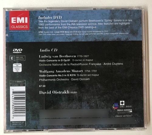 David Oistrakh – Legend: Beethoven & Mozart / Violin Concertos/ 2005, EMI/ EMI Classics/ Edição europeia / CD tocando normalmente / Música clássica / Música de concerto / Música erudita. Acompanha DVD.