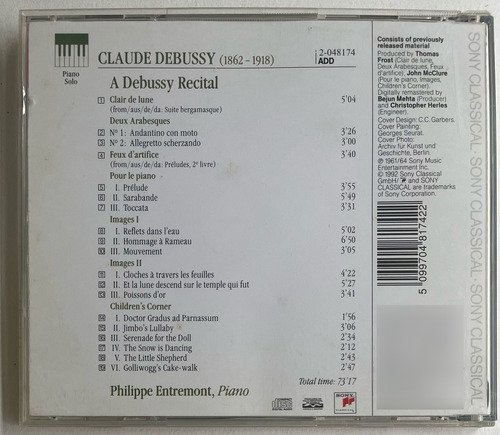 Seja o primeiro a avaliar “CD Debussy – Piano Works Philippe Entremont”