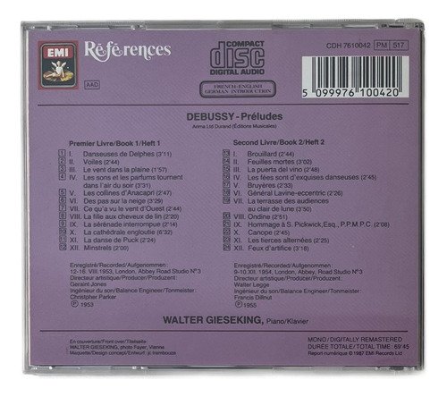 CD EMI / Rèfèrences Debussy Préludes, Livres I & II / Walter Gieseking.A Oto Livraria É Uma Extensão Da Oto Reifschneider Galeria De Arte, Que Funciona Em Brasília Desde 2015. Com Foco Em Artes E Assuntos Correlatos (como Design, Ilustração, Fotografia E Histórias Em Quadrinhos), O Acervo Também Conta Com Lps, Cds E Dvds. a Oto Livraria Funciona Na Mesma Quadra Da Galeria De Arte. as Compras Podem Ser Retiradas Pessoalmente Em Brasília Ou Enviadas Pelos Correios (solicite Valores De Envio).
