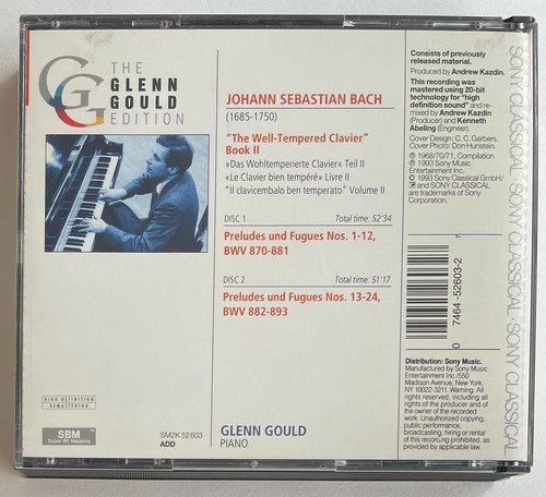 CD duplo / Glenn Gould, piano / Johann Sebastian Bach / The Well – Tempered Clavier II / Sony Classical / Edição importada Estados Unidos – 1993 / CD tocando normalmente. A Oto Livraria é uma extensão da Oto Reifschneider Galeria de Arte, que funciona em Brasília desde 2015. Com foco em artes e assuntos correlatos (como design, ilustração, fotografia e histórias em quadrinhos), o acervo também conta com LPs, CDs e DVDs. A Oto Livraria funciona na mesma quadra da galeria de arte. As compras podem ser retiradas pessoalmente em Brasília ou enviadas pelos Correios (solicite valores de envio).