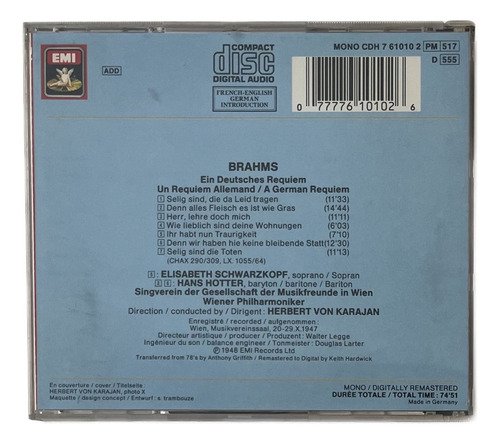 CD EMI – Brahms Ein Deutsches Requiem