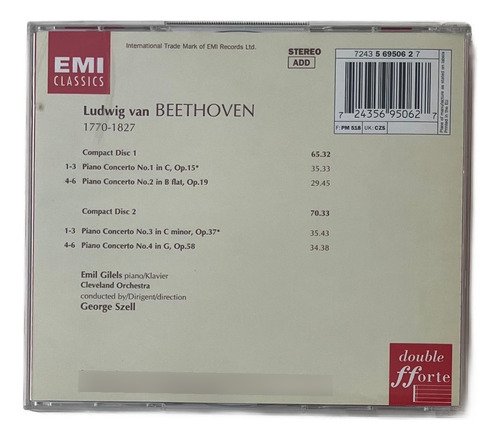 CD EMI Classics / Beethoven Piano Concertos Nos. 1-4 / Emil Gilels – Cleveland Orchestra – George Szell