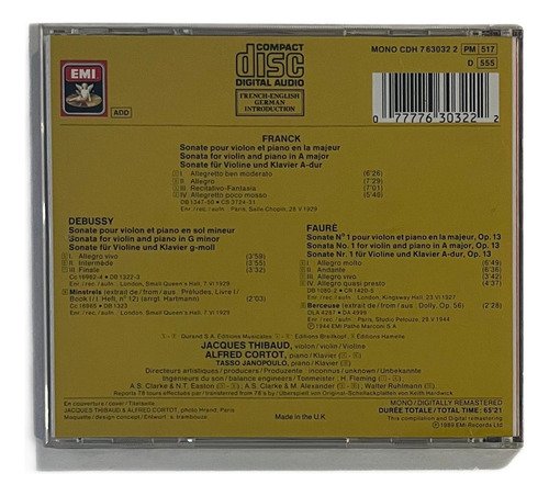 CD EMI / Franck: Sonate – Fauré: Sonate No. 1 • Berceuse – Debussy: Sonate • Minstrels / Jacques Thibaud – Alfred Cortot.A Oto Livraria é uma extensão da Oto Reifschneider Galeria de Arte, que funciona em Brasília desde 2015. Com foco em artes e assuntos correlatos (como design, ilustração, fotografia e histórias em quadrinhos), o acervo também conta com LPs, CDs e DVDs. A Oto Livraria funciona na mesma quadra da galeria de arte. As compras podem ser retiradas pessoalmente em Brasília ou enviadas pelos Correios (solicite valores de envio).