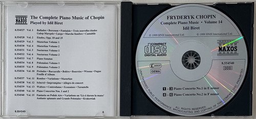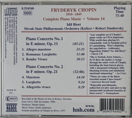CD Naxos / Fryderyk Chopin – Piano Concertos Nos. 1 and 2 / Idil Biret – Slovak State Philharmonic Orchestra (Košice) – Robert Stankovsky / Grand Prix du Disque Chopin 1995 / Complete Piano Music / Volume 14.A Oto Livraria é uma extensão da Oto Reifschneider Galeria de Arte, que funciona em Brasília desde 2015. Com foco em artes e assuntos correlatos (como design, ilustração, fotografia e histórias em quadrinhos), o acervo também conta com LPs, CDs e DVDs. A Oto Livraria funciona na mesma quadra da galeria de arte. As compras podem ser retiradas pessoalmente em Brasília ou enviadas pelos Correios (solicite valores de envio).