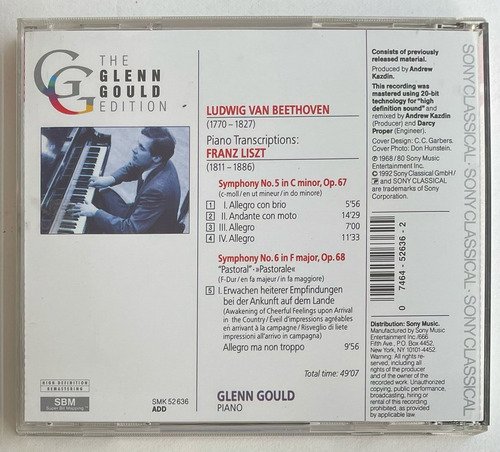 Glenn Gould / Beethoven / Liszt / (Piano Transcriptions) Symphony No. 5 Op. 67 & Symphony No. 6, Op. 68: 1° Movement/1. Satz / Sony Classical / Edição importada Estados Unidos – 1992 / CD tocando normalmente.A Oto Livraria é uma extensão da Oto Reifschneider Galeria de Arte, que funciona em Brasília desde 2015. Com foco em artes e assuntos correlatos (como design, ilustração, fotografia e histórias em quadrinhos), o acervo também conta com LPs, CDs e DVDs. A Oto Livraria funciona na mesma quadra da galeria de arte. As compras podem ser retiradas pessoalmente em Brasília ou enviadas pelos Correios (solicite valores de envio).