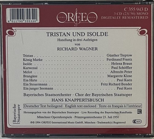 CD Orfeo / Hans Knappertsbusch /Wagner • Tristan Und Isolde – Braun • Klose • Treptow • Schóffler • Frantz / Live Bayerische Staatsoper.A Oto Livraria é uma extensão da Oto Reifschneider Galeria de Arte, que funciona em Brasília desde 2015. Com foco em artes e assuntos correlatos (como design, ilustração, fotografia e histórias em quadrinhos), o acervo também conta com LPs, CDs e DVDs. A Oto Livraria funciona na mesma quadra da galeria de arte. As compras podem ser retiradas pessoalmente em Brasília ou enviadas pelos Correios (solicite valores de envio).