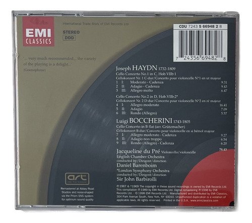 CD EMI Classics / Great Recordings of the Century / Haydn – Cello Concertos – Boccherini – Cello Concerto / Jacqueline du Pré – Daniel Barenboim – Sir John Barbirolli.A Oto Livraria É Uma Extensão Da Oto Reifschneider Galeria De Arte, Que Funciona Em Brasília Desde 2015. Com Foco Em Artes E Assuntos Correlatos (como Design, Ilustração, Fotografia E Histórias Em Quadrinhos), O Acervo Também Conta Com Lps, Cds E Dvds. a Oto Livraria Funciona Na Mesma Quadra Da Galeria De Arte. as Compras Podem Ser Retiradas Pessoalmente Em Brasília Ou Enviadas Pelos Correios (solicite Valores De Envio).