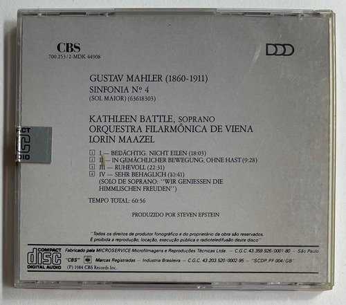 Lorin Maazel – Vienna Philharmonic – Kathleen Battle, soprano / Mahler – Symphony No. 4 / CBS / Edição Nacional Brasil – 1984 / CD tocando normalmente. A Oto Livraria é uma extensão da Oto Reifschneider Galeria de Arte, que funciona em Brasília desde 2015. Com foco em artes e assuntos correlatos (como design, ilustração, fotografia e histórias em quadrinhos), o acervo também conta com LPs, CDs e DVDs. A Oto Livraria funciona na mesma quadra da galeria de arte. As compras podem ser retiradas pessoalmente em Brasília ou enviadas pelos Correios (solicite valores de envio).