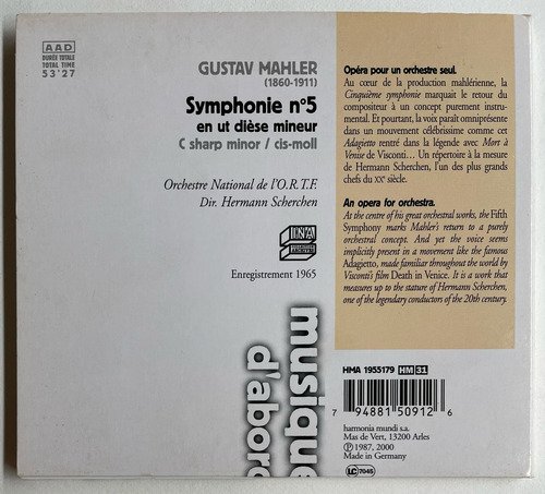 Orchestre National de I’O.R.T.F Dir. Hrmann Scherchen / Gustav Mahler / Symphonie n°5 en ut dièse mineur / Harmonia mundi / Edição importada Alemanha – 2000 / CD tocando normalmente. A Oto Livraria é uma extensão da Oto Reifschneider Galeria de Arte, que funciona em Brasília desde 2015. Com foco em artes e assuntos correlatos (como design, ilustração, fotografia e histórias em quadrinhos), o acervo também conta com LPs, CDs e DVDs. A Oto Livraria funciona na mesma quadra da galeria de arte. As compras podem ser retiradas pessoalmente em Brasília ou enviadas pelos Correios (solicite valores de envio).