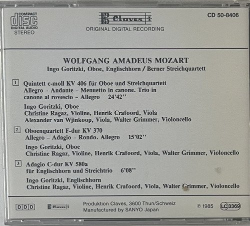 CD Claves / Mozart – Oboenquartett KV 370 – Quintett KV 406, Adagio KV 580a / Ingo Goritzki, Oboe – Berner Streichquartett.A Oto Livraria é uma extensão da Oto Reifschneider Galeria de Arte, que funciona em Brasília desde 2015. Com foco em artes e assuntos correlatos (como design, ilustração, fotografia e histórias em quadrinhos), o acervo também conta com LPs, CDs e DVDs. A Oto Livraria funciona na mesma quadra da galeria de arte. As compras podem ser retiradas pessoalmente em Brasília ou enviadas pelos Correios (solicite valores de envio).