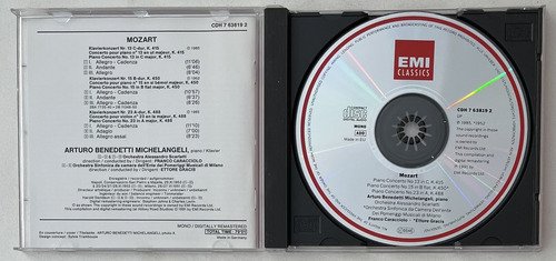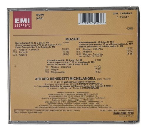 CD EMI Classics / Références / Mozart Piano Concertos 13, Kv 415,15, Kv 450, 23, Kv 488 / Arturo Benedetti – Michelangeli – Franco Caracciolo – Ettore Gracis.A Oto Livraria é uma extensão da Oto Reifschneider Galeria de Arte, que funciona em Brasília desde 2015. Com foco em artes e assuntos correlatos (como design, ilustração, fotografia e histórias em quadrinhos), o acervo também conta com LPs, CDs e DVDs. A Oto Livraria funciona na mesma quadra da galeria de arte. As compras podem ser retiradas pessoalmente em Brasília ou enviadas pelos Correios (solicite valores de envio).