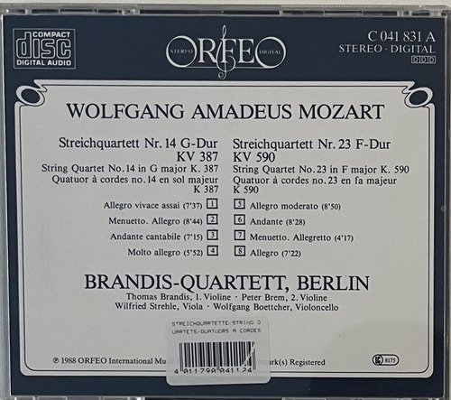 CD Orfeo / Mozart – Streichquartette • Suing Quartets • Quatuors à cordes – G-Dur – G Major – sol majeur K 387 – F-Dur – F major – fa majeur K 590 / Brandis-Quartett, Berlin.A Oto Livraria é uma extensão da Oto Reifschneider Galeria de Arte, que funciona em Brasília desde 2015. Com foco em artes e assuntos correlatos (como design, ilustração, fotografia e histórias em quadrinhos), o acervo também conta com LPs, CDs e DVDs. A Oto Livraria funciona na mesma quadra da galeria de arte. As compras podem ser retiradas pessoalmente em Brasília ou enviadas pelos Correios (solicite valores de envio).