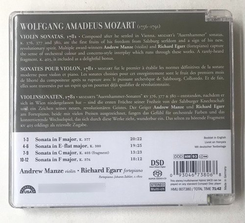 CD Mozart Violin Sonatas 1781 Super Audio Cd