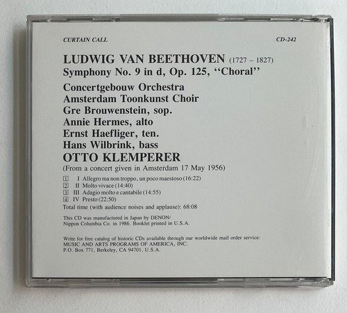 CD Otto Klemperer Beethoven Symphony No. 9 In D Minor Op.125