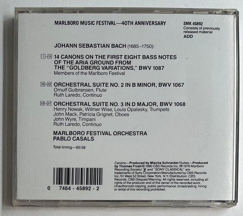 CD Pablo Casals Bach: 14 Canons/orchestral Suites Nos. 2 & 3