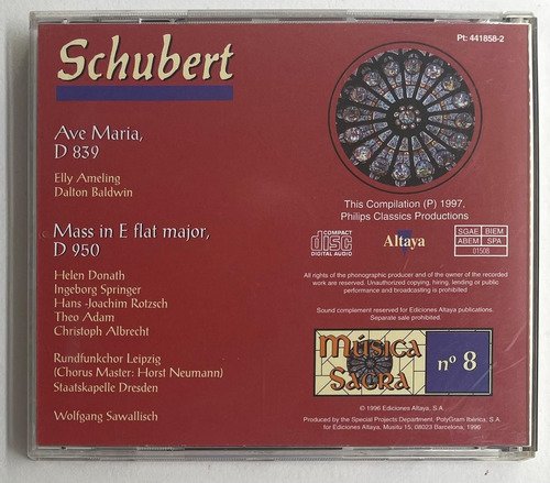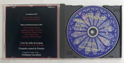 Orquestra estatal de Dresden – Wolfgang Sawallisch / Schubert – Ave Maria, D 839 – Missa em Mi Bemol Maior, D 950 / Música Sacra N°8 / Altaya / Edição importada Europa – 1996 / CD tocando normalmente. A Oto Livraria é uma extensão da Oto Reifschneider Galeria de Arte, que funciona em Brasília desde 2015. Com foco em artes e assuntos correlatos (como design, ilustração, fotografia e histórias em quadrinhos), o acervo também conta com LPs, CDs e DVDs. A Oto Livraria funciona na mesma quadra da galeria de arte. As compras podem ser retiradas pessoalmente em Brasília ou enviadas pelos Correios (solicite valores de envio).