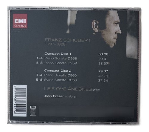 CD EMI Classics / Schubert Late Piano Sonatas – D850, D958, D959, D960 / Leif Ove Andsnes / CD Duplo.A Oto Livraria é uma extensão da Oto Reifschneider Galeria de Arte, que funciona em Brasília desde 2015. Com foco em artes e assuntos correlatos (como design, ilustração, fotografia e histórias em quadrinhos), o acervo também conta com LPs, CDs e DVDs. A Oto Livraria funciona na mesma quadra da galeria de arte. As compras podem ser retiradas pessoalmente em Brasília ou enviadas pelos Correios (solicite valores de envio).