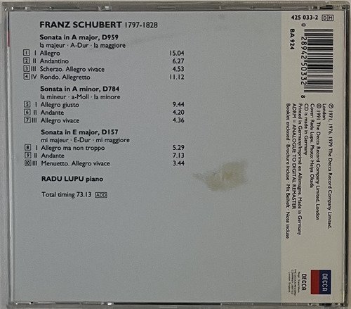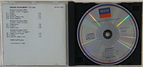 CD Decca / Schubert – Piano Sonatas Klaviersonaten – D959 – D784 – D157 / Radu Lupu / Ovation.A Oto Livraria é uma extensão da Oto Reifschneider Galeria de Arte, que funciona em Brasília desde 2015. Com foco em artes e assuntos correlatos (como design, ilustração, fotografia e histórias em quadrinhos), o acervo também conta com LPs, CDs e DVDs. A Oto Livraria funciona na mesma quadra da galeria de arte. As compras podem ser retiradas pessoalmente em Brasília ou enviadas pelos Correios (solicite valores de envio).